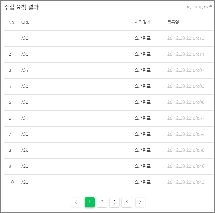 이렇게 하나하나 작성한 게시글의 URL을 수집요청하였다. 기계가 해야하는 일이나, 신생 블로거니까 불편함을 감수하도록 하자. '최근 50개만 노출'이라는 문구는 하루에 50개의 URL만 수집요청가능하다는 뜻으로 해석된다. 티스토리가 제공하는 RSS 서비스를 기반으로 하는 것이기 때문이다. 이곳 저곳 알아본 결과, 네이버>다음>구글 순으로 종종 본인이 작성한 게시글이 누락되는 현상이 목격된다고 한다. 누락된 URL은 다시 수집 요청을 해야한다.