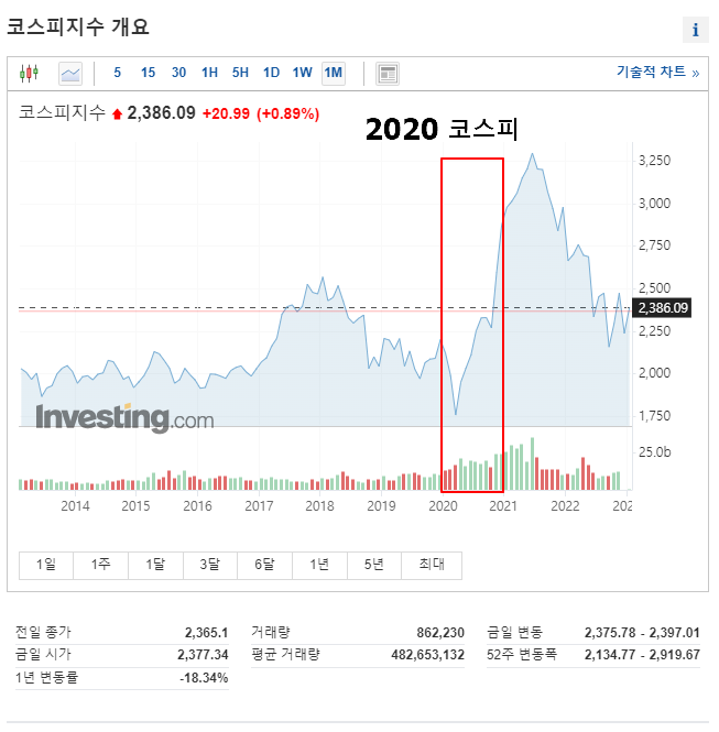 - 2020년도의 코스피 지수