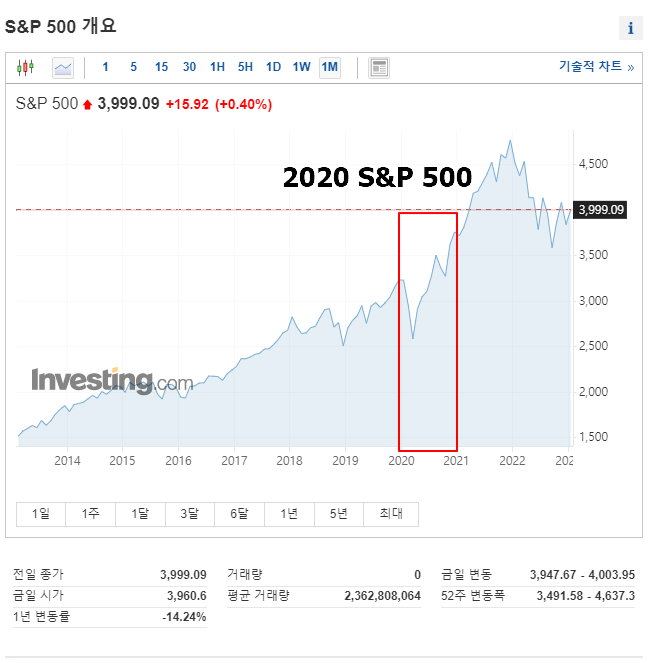 - 2020년도의 S&P 500 지수