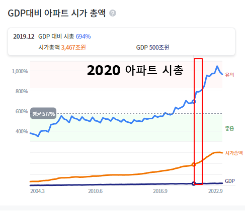 - 2020년도의 아파트 시가총액 (GDP 대비)