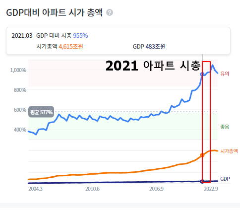 - 2021년도의 아파트 시가총액 (GDP 대비)