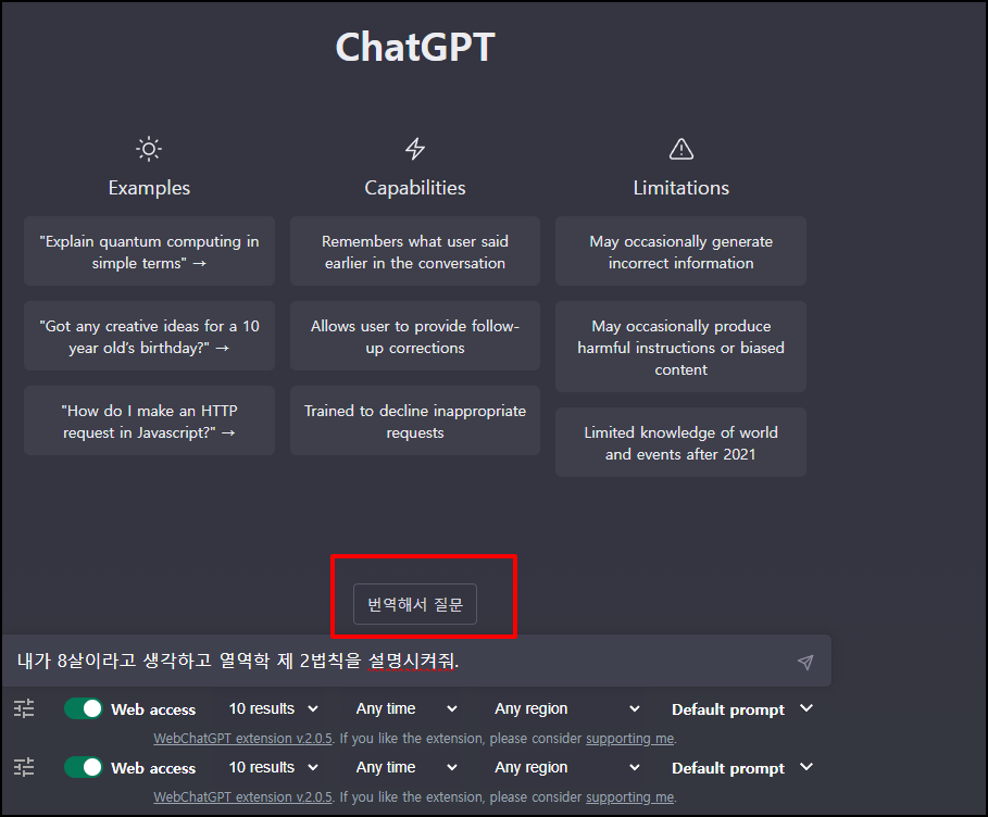 - 번역해서 질문한 내용에만 번역해서 답변을 볼 수 있음. (기존에 영어로 질문했던거 종종 번역안해줌.)