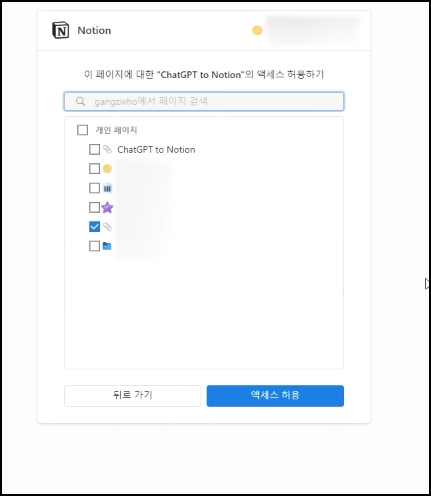 3) 확장앱 설치후 페이지 선택 - 추가한 템플릿 선택 후 액세스 허용