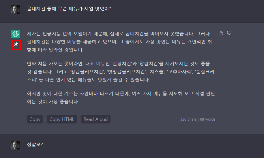 - 장점 : New Clear Conversation 클릭하면 대화기록 다 날릴 수 있는데, 백업용으로 좋고 정리해서 필요한 답변만 정리 가능해서 좋음