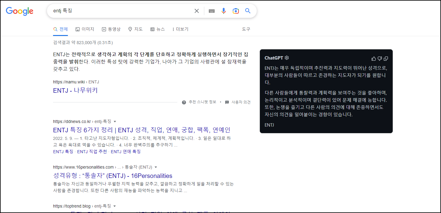 - 장점 : 검색 결과랑 같이 GPT 결과를 볼 수 있어서 좋음