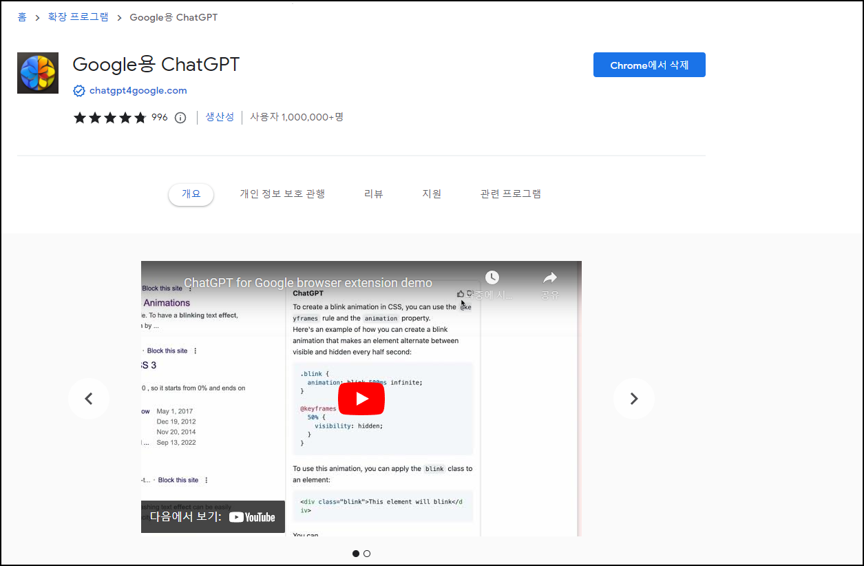 - 구글 검색엔진 옆에 ChatGPT를 띄워줌