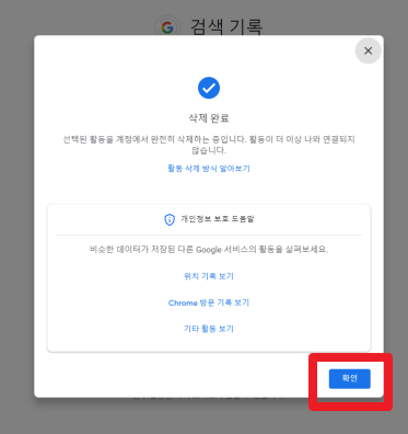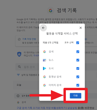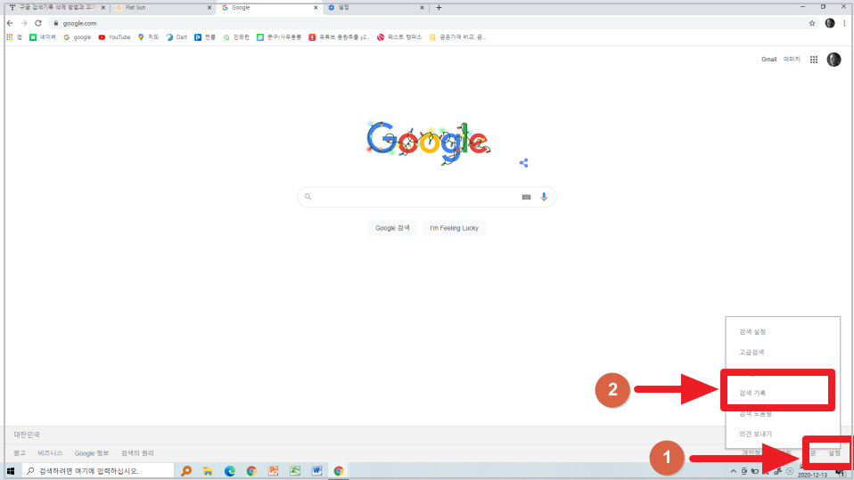 4-1. 구글 도메인 우측 하단 설정 - 검색기록 클릭