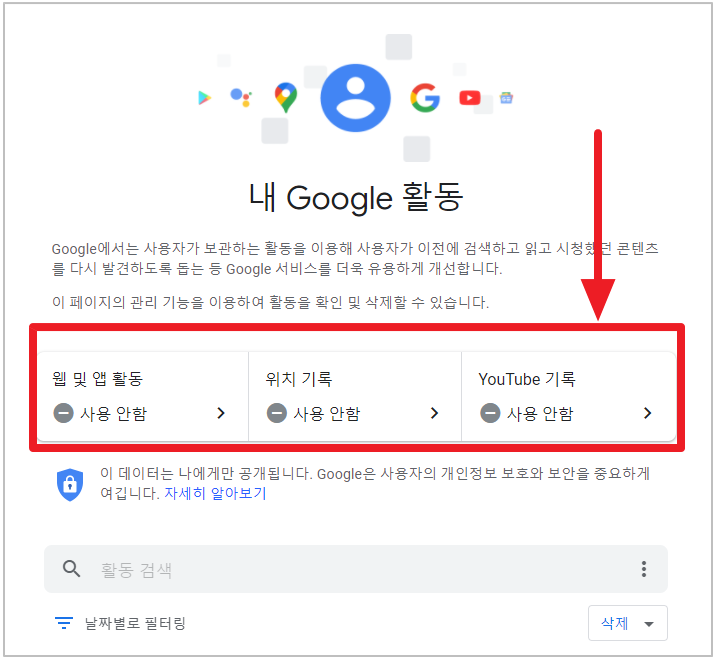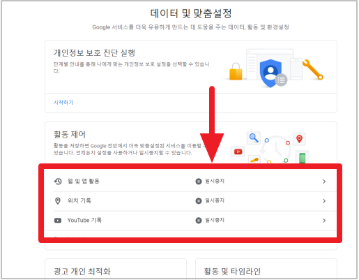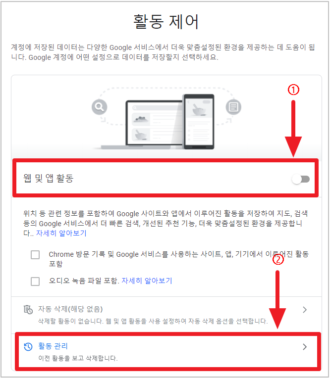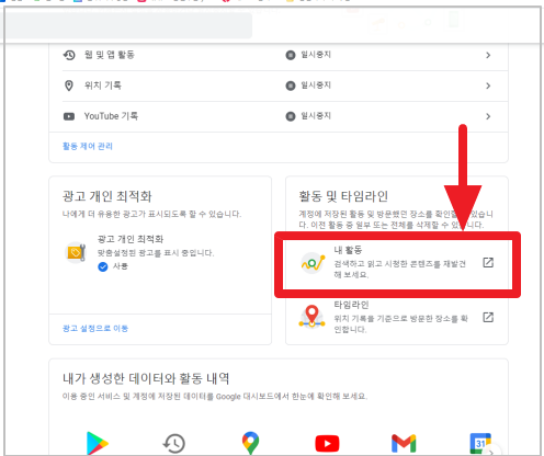 1-4. 웹 및 앱 활동 비활성화 - 활동 관리 클릭