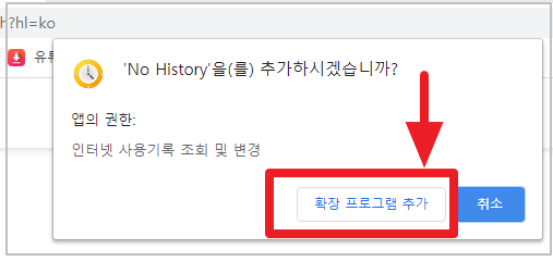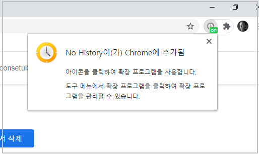 5-5. 우측 상단에 No History Chrome 추가됨 확인