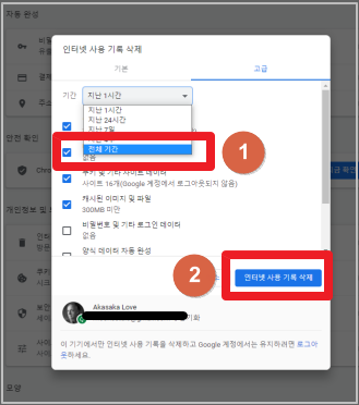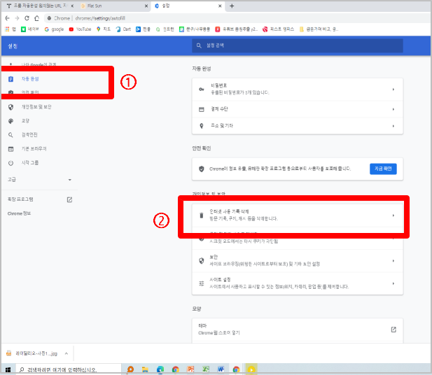 3-2. 자동 완성 - 인터넷 사용 기록 삭제 클릭