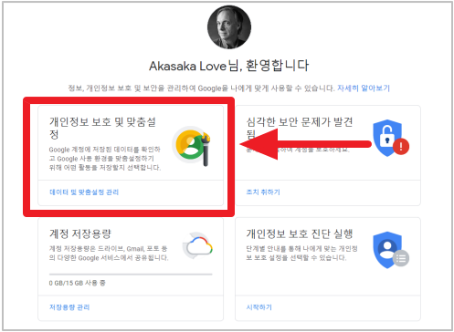 2-1. 구글 도메인 우측 상단 본인 마크 클릭 - Google 계정 관리 클릭
