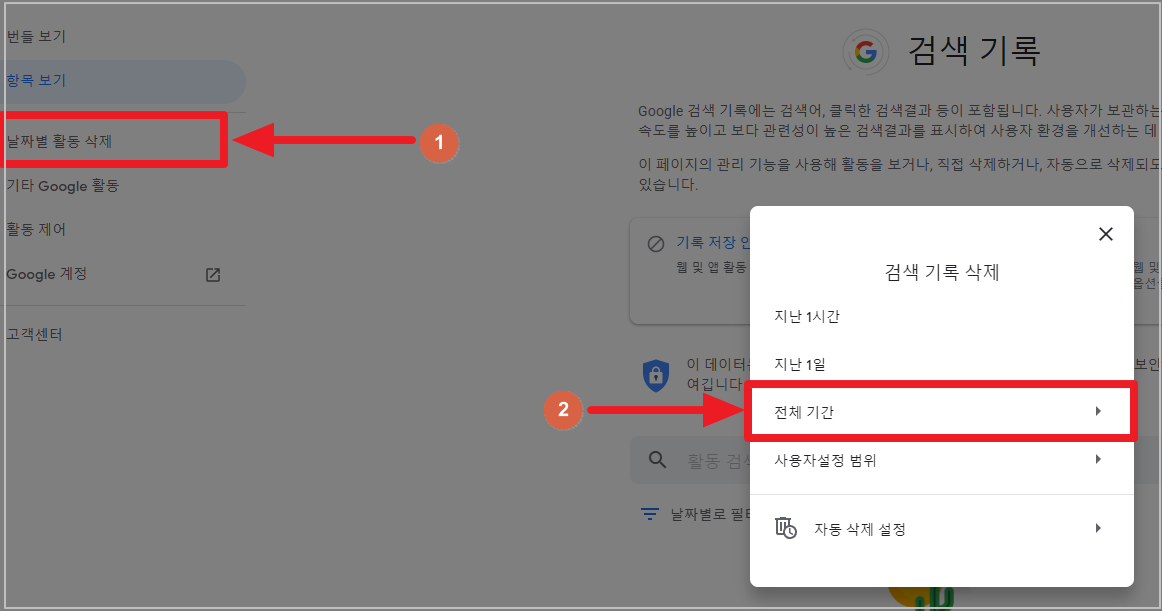 3-3. 전체 기간으로 설정 후 기록 삭제