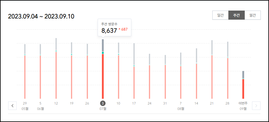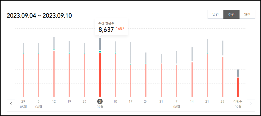 6월28일 ~ 7월 22일 기간동안 블로그의 방문자수는 전혀 감소하지 않았고, 평균을 유지하고 있었다.