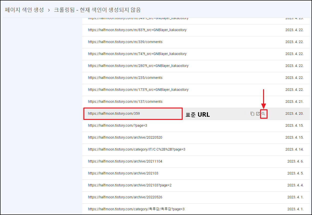 ※ 표준 URL 예시 : https://halfmoon.tistory.com/266