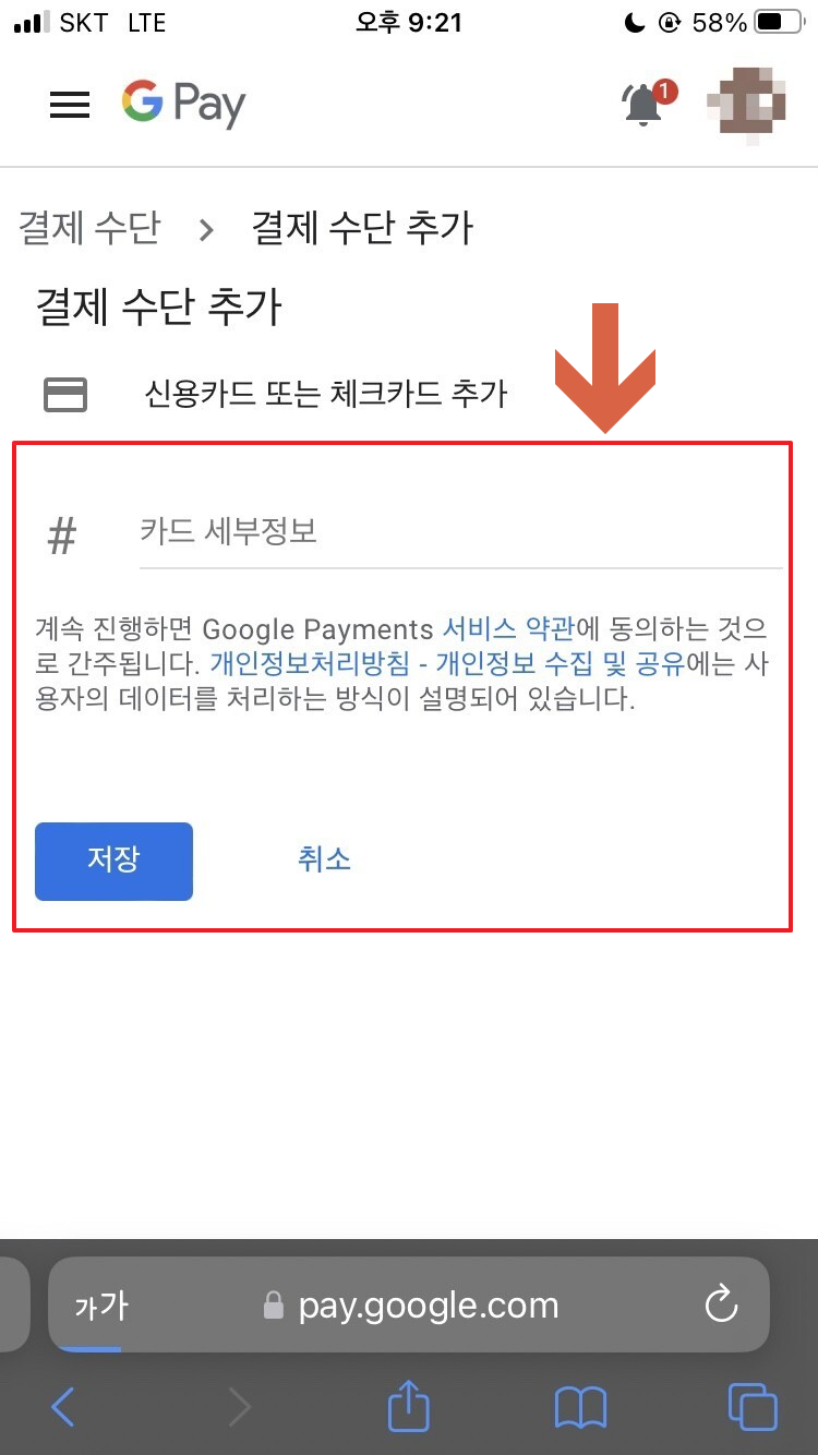 유튜브 어플에서 바로 카드 등록을 할 수 있으면 좋을텐데 조금 불편한 구조로 되어있다.
