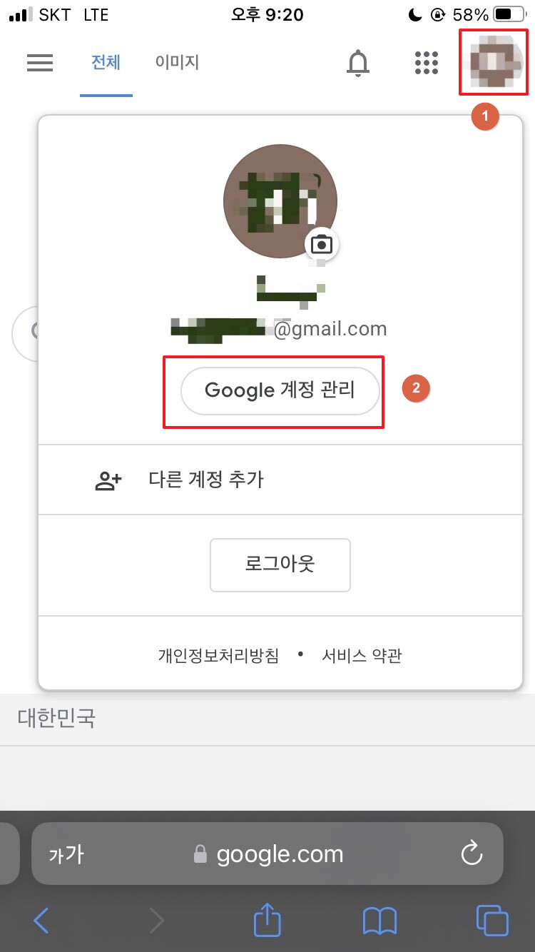 1. 구글 로그인 - Google 계정 관리 클릭