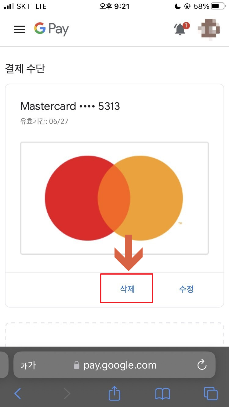 위에 써둔 내용대로 카드 변경 들어간 후