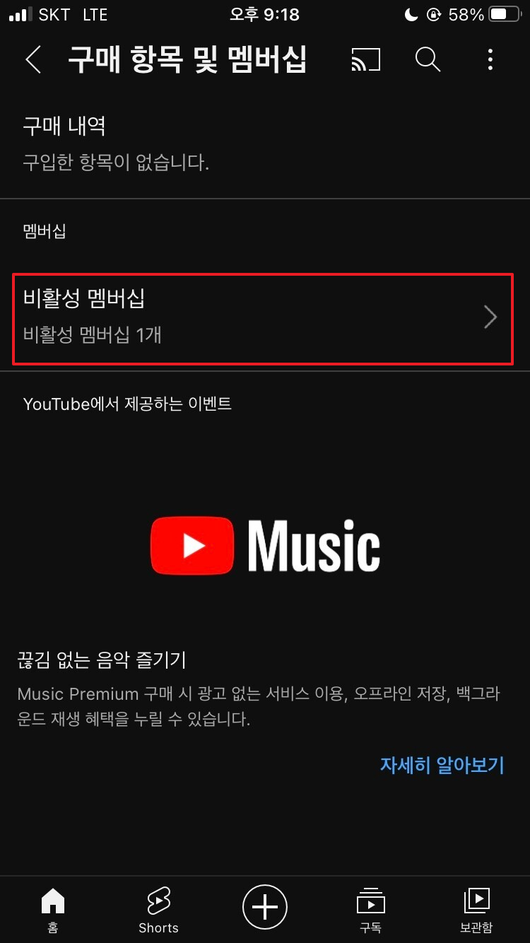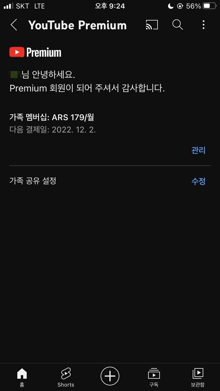 * 유튜브 프리미엄을 인도나 아르헨티나로 우회해 사용하다가 문제가 생기면 우선 유튜브 어플 설정-구매항목 및 멤버십에서 상태 확인해보기!