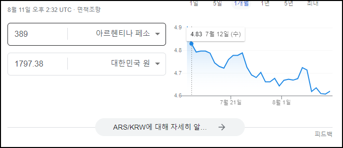 최근 아르헨티나 환율떡락으로 현재기준 아르헨티나가 제일 저렴한 가격이다.