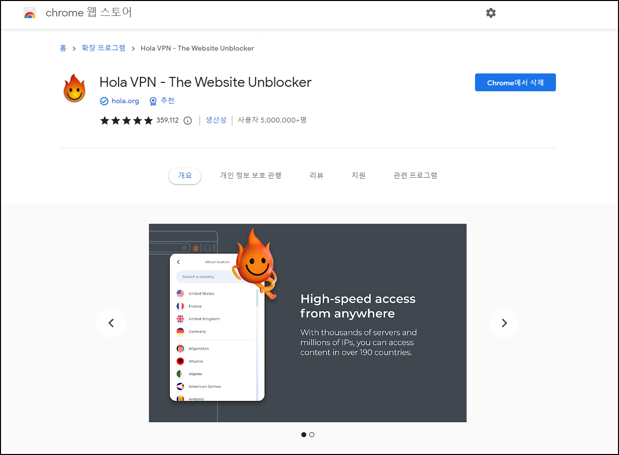 속도/사용가능시간 등 모든 방면에서 현존하는 VPN중 최고는 Hola VPN이다.