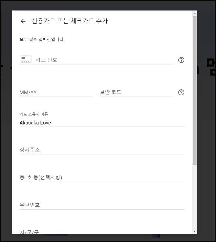 - 카드정보는 카드에 적혀있는 그대로 입력할 것 (영문이름도 똑같이)