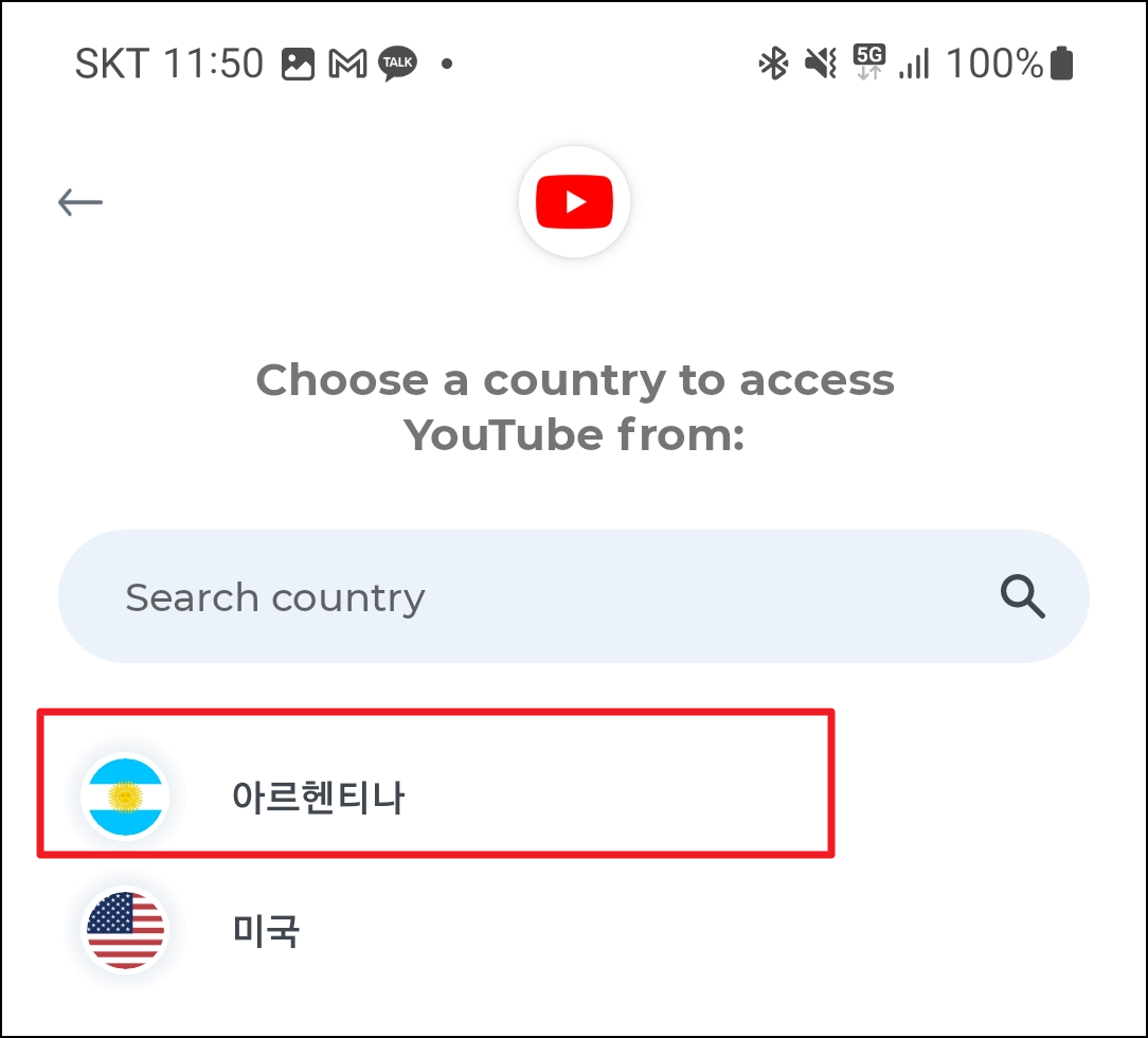 2-2) PC의 경우 : 국가를 눌러 아르헨티나(Argentina) 선택