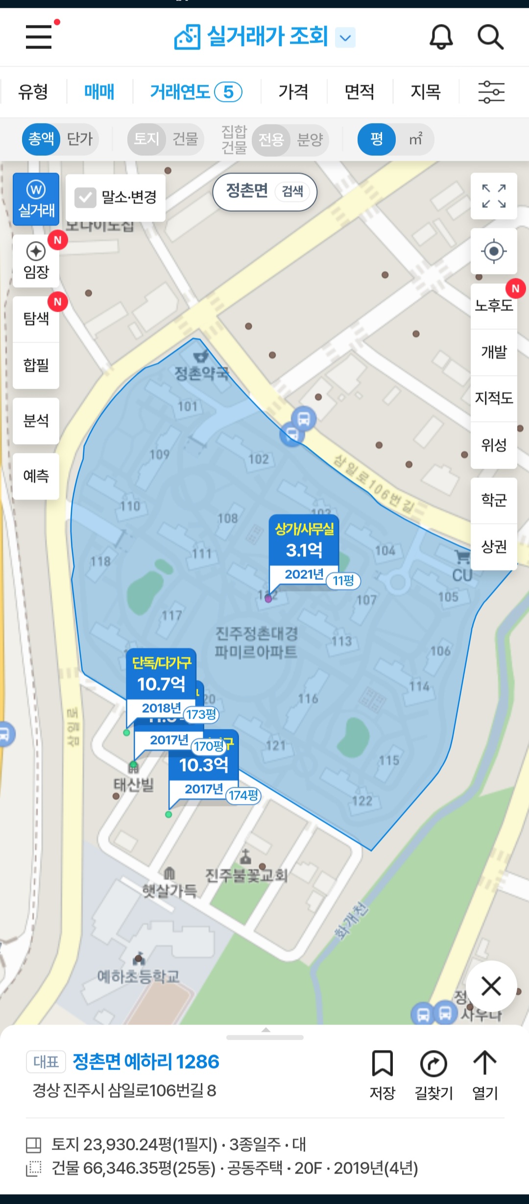 단지의 대지면적은 부동산플래닛 같은 앱에서 단지를 검색해보면 된다.