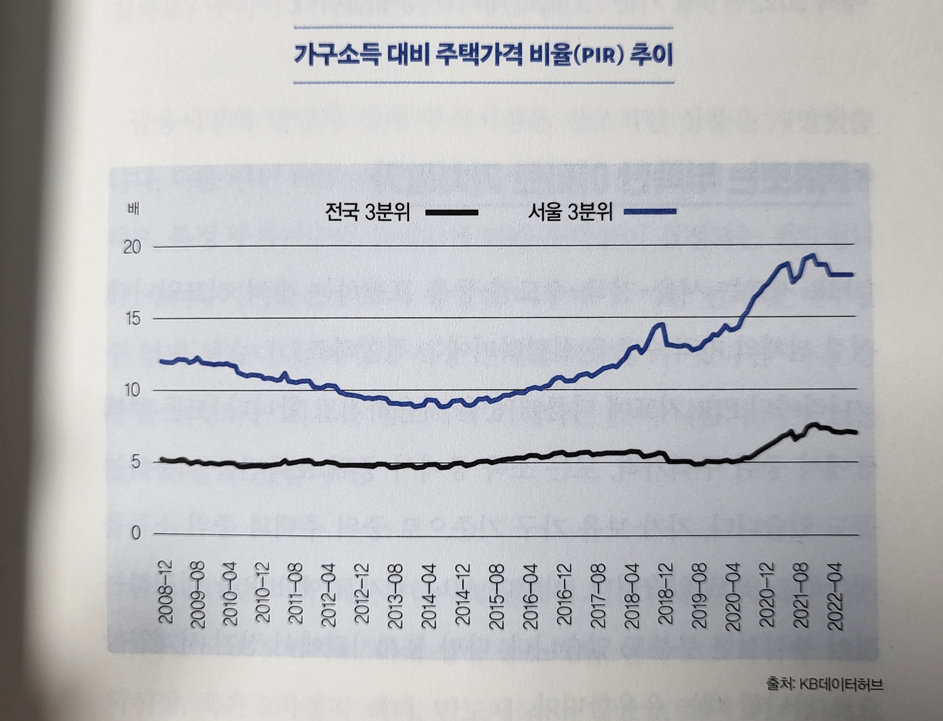 이 PIR 지수는 장기적인 추세로 보면 특정 평균값을 회귀하는 특성이 있다. 서울 평균은 10~12배, 전국 평균은 5~6배를 회귀한다. (2022년 9월 기준, 서울은 17.6배, 전국은 7.1배 수준이므로 아직 고평가 되어있다고 볼 수 있다)