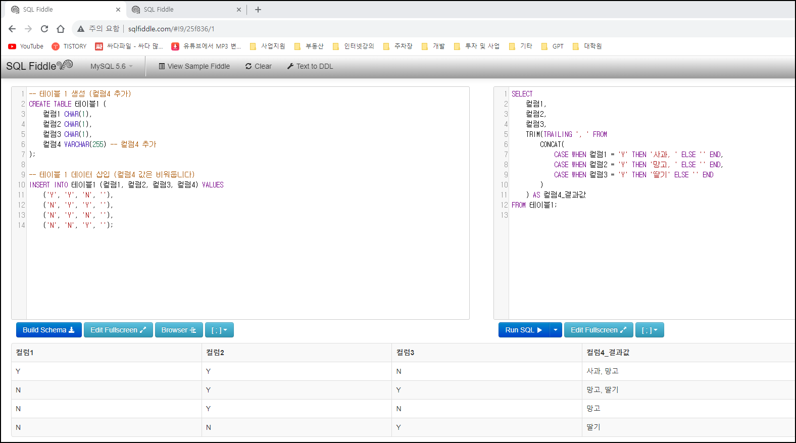 쿼리 테스트 사이트 링크 : http://sqlfiddle.com/