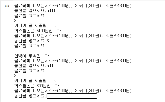 <실습문제> - 조건문과 반복문을 활용하여 음료 자판기 프로그램을 만들기
