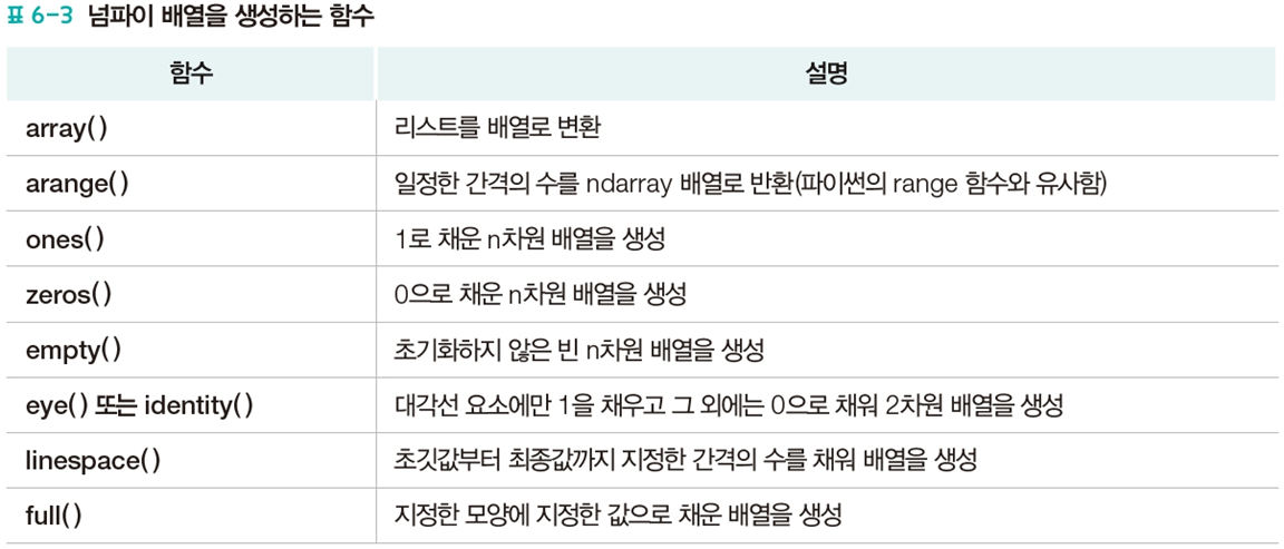 np.array([~~~]) : 넘파이 배열 생성
