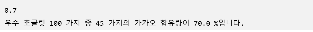 (우수 초콜릿 n가지 중 m 가지의 카카오 함유량이 xx%입니다. 형태로 출력)