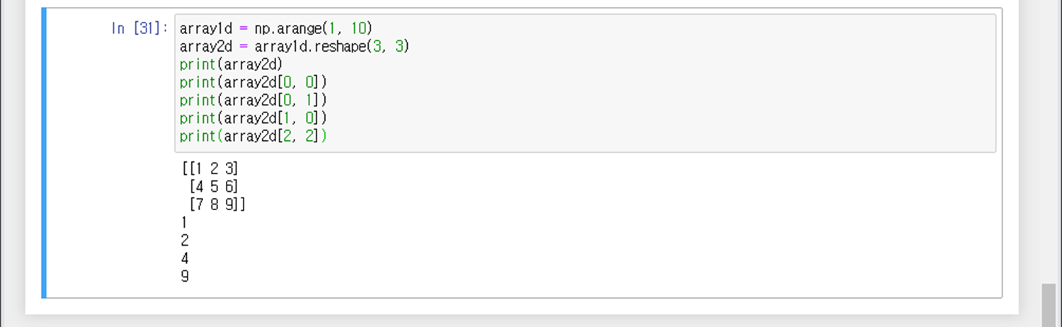 *[n] = *넘파이 행렬의 n번째 단일 값을 출력(0번부터 시작)