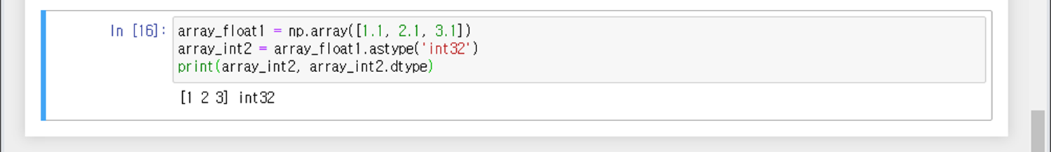 *.astype('자료형') : * 넘파이 행렬의 배열요소의 자료형을 괄호안의 자료형으로 변환