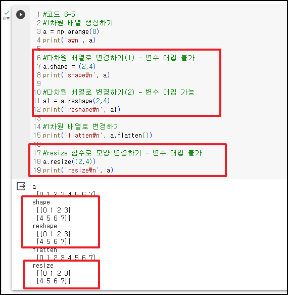 *.resize(a,b) : *넘파이 행렬의 차원을 axb 행렬로 차원변경 (변수 대입 불가)
