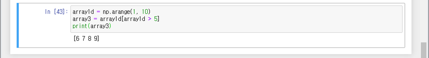 [* > n] = *넘파이 행렬의 값이 n보다 크면 True를 리턴한다.
