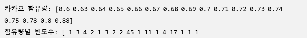 '가지의 카카오 함유량이', unique_values[max_index] * 100, '%입니다.')