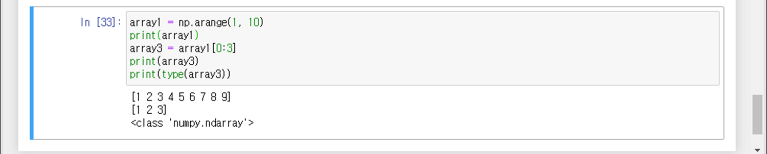 np.array([1,2,3]) = 값 3개로 구성된 1차원배열라는 뜻