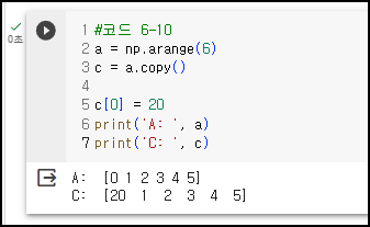 (L5~7) c 배열의 0번값을 20으로 바꾸더라도, a 배열에는 영향이 없다.