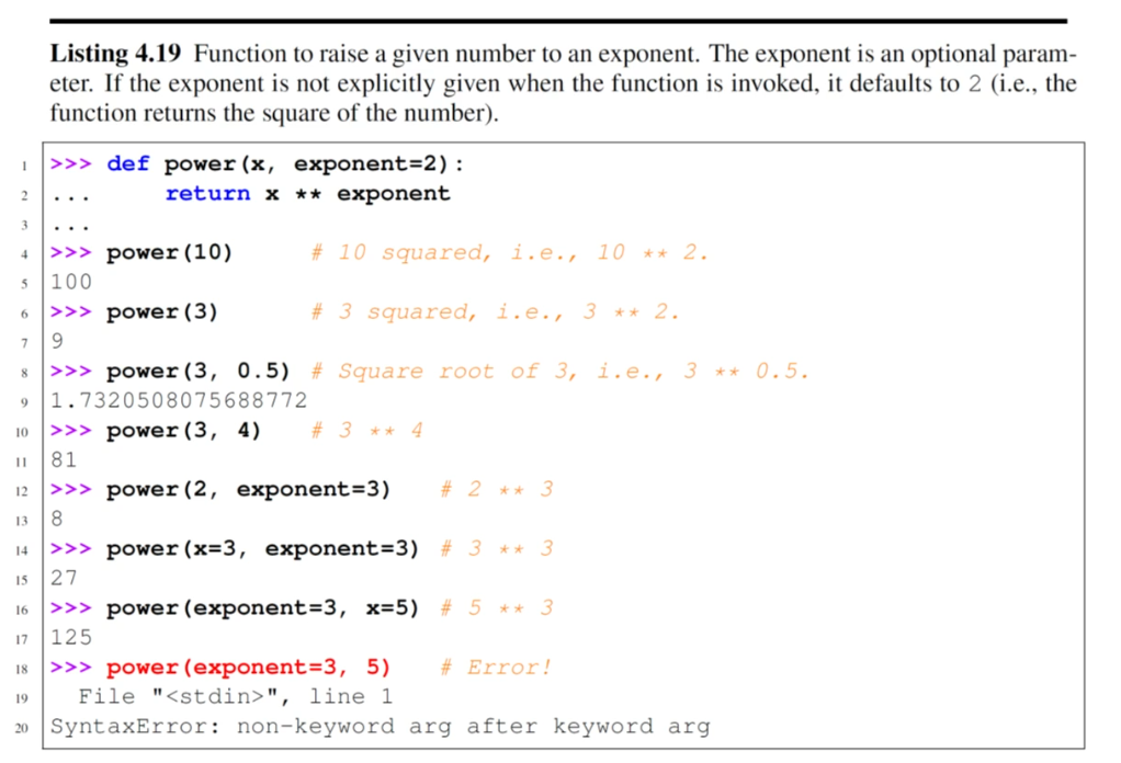제곱을 구하는 함수인 power 함수를 정의하고, 계수를 인자로 받지 못하는 경우, 2를 디폴트값으로 정의하였다.