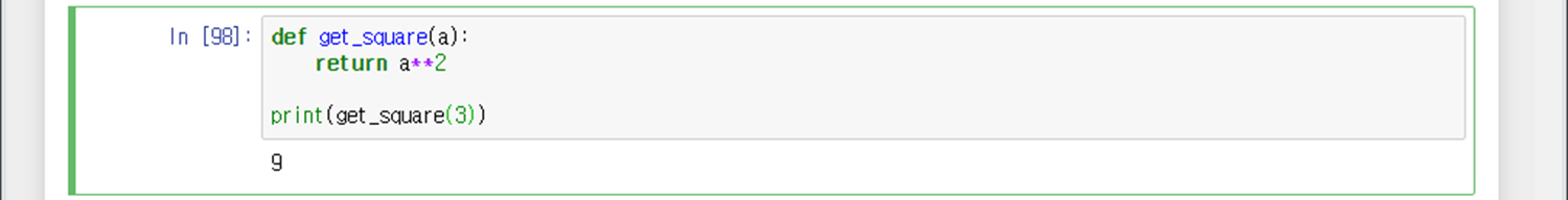 제곱을 구하는 get_square함수를 생성하여 3을 인자로 넣어 9를 반환받음