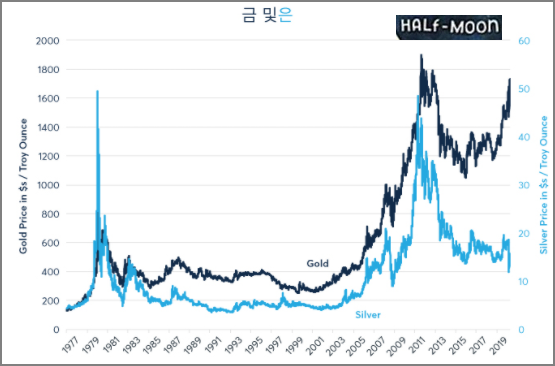 - 금보다 변동성이 훨씬 크므로 안전자산이 결코 아님. 경기가 불확실하면 금은비가 더 커지다가 시간차를 두고 금 가격 추종함