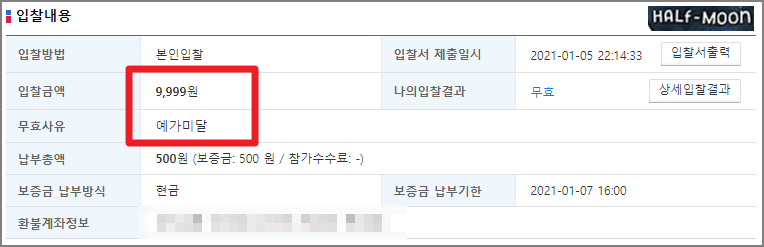 - 낙찰 실패 시 보증금은 100% 환불됨