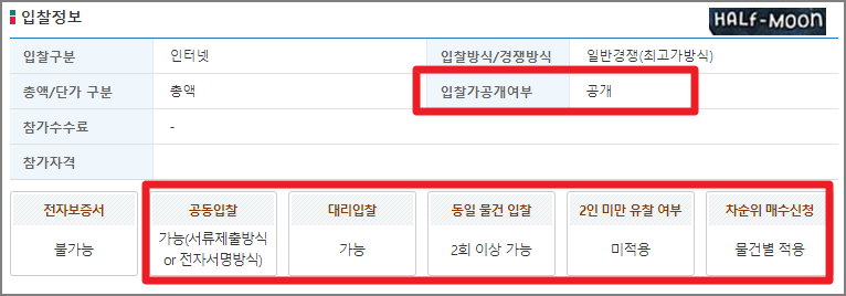 ① 비공개 입찰 : 매각하는 곳에서 최저입찰가격을 안 알려준다. 예를 들어 비공개된 최저입찰가격이 천만 원이면 천만 원보다 낮은 가격으로 쓴 사람들은 '예가미달'로 무효처리된다. 보통 비공개처리 된 최저입찰가격이 감정가 이상이다.
