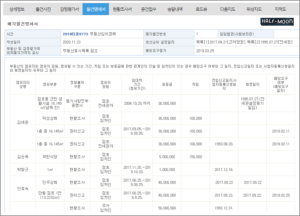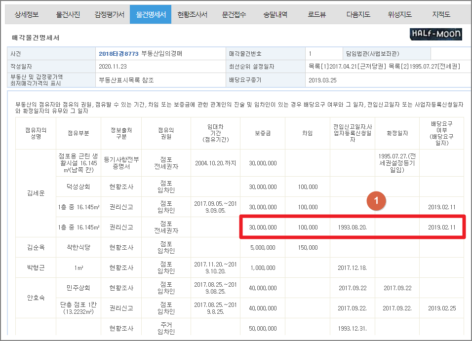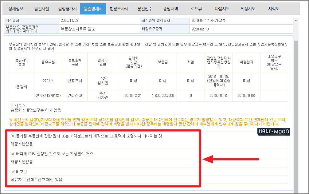 물건명세서를 보자.