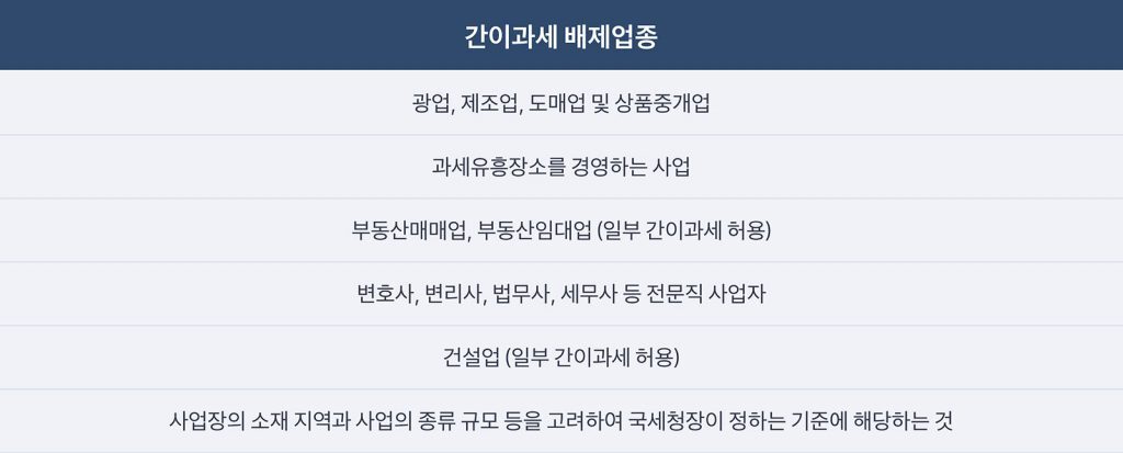 - 간이과세자가 불가능한 업종이 많다. (아래 링크를 참고하자)