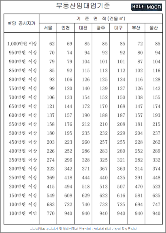 2) 공시지가당 기준면적을 초과하는 부동산임대업을 하는 경우