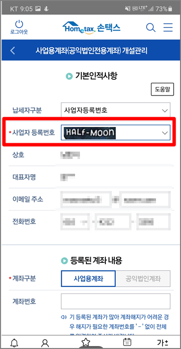 5. 사업자등록번호 선택