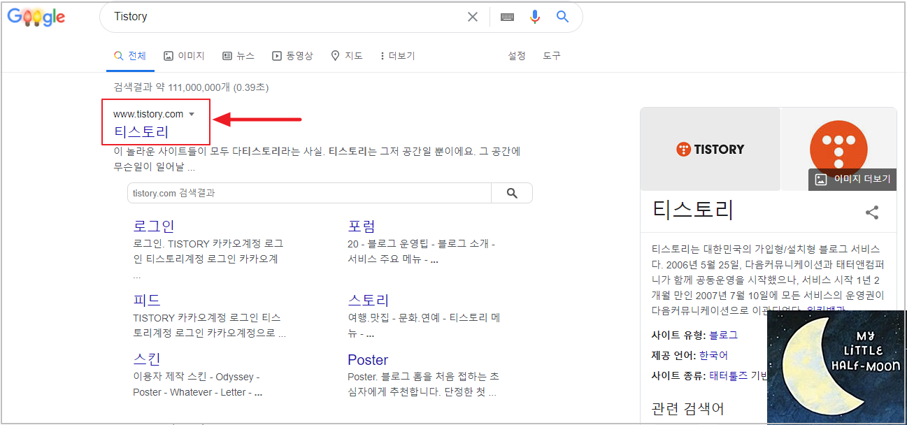 1. 검색엔진에 Tistory 검색