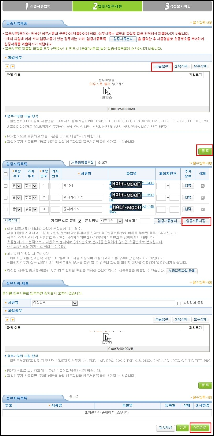 5) 입증서류(증거) 제출